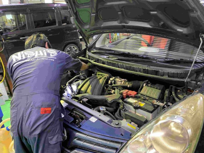 西自動車商会では、お客さまに安全で快適なカーライフを提供するために車検や点検時にオイル交換をオススメしております。