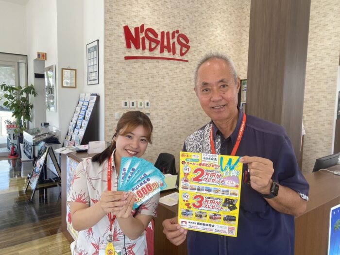 今回、西自動車商会と沖縄で有名なビッグワン様とのコラボ企画を実施中です。