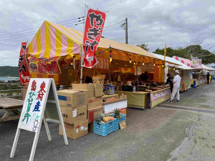 つつじを見て回るだけではなく、東村の特産品販売コーナーや屋台、週末はイベントの開催など