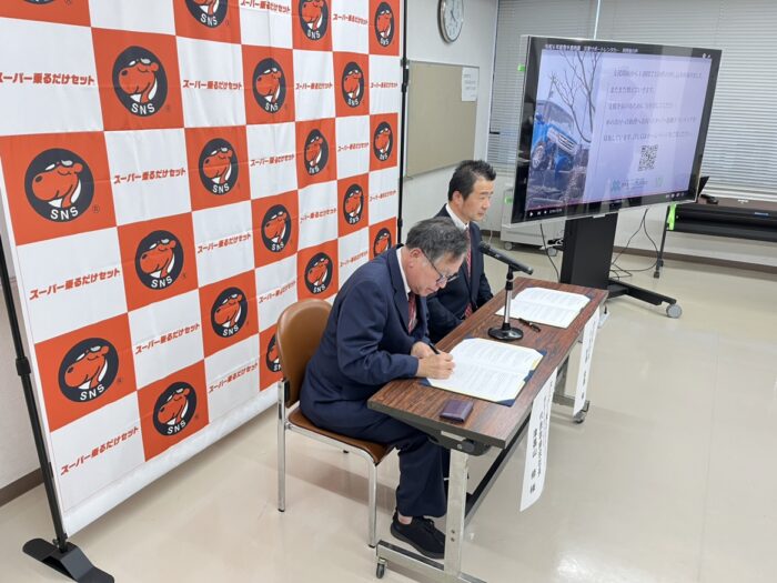 その後、白山市松任の産業会館に移動し、日本カーシェアリング協会様と「スーパー乗るだけセットボランタリーチェーン」との災害支援協定締結式を執り行いました。