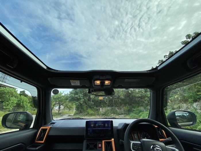 タフトは「スカイフィールトップ」というガラスルーフが付いており、ハスラーに比べて開放感があります。