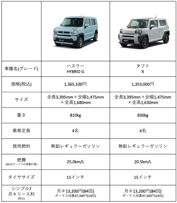 ハスラーとタフトの比較表