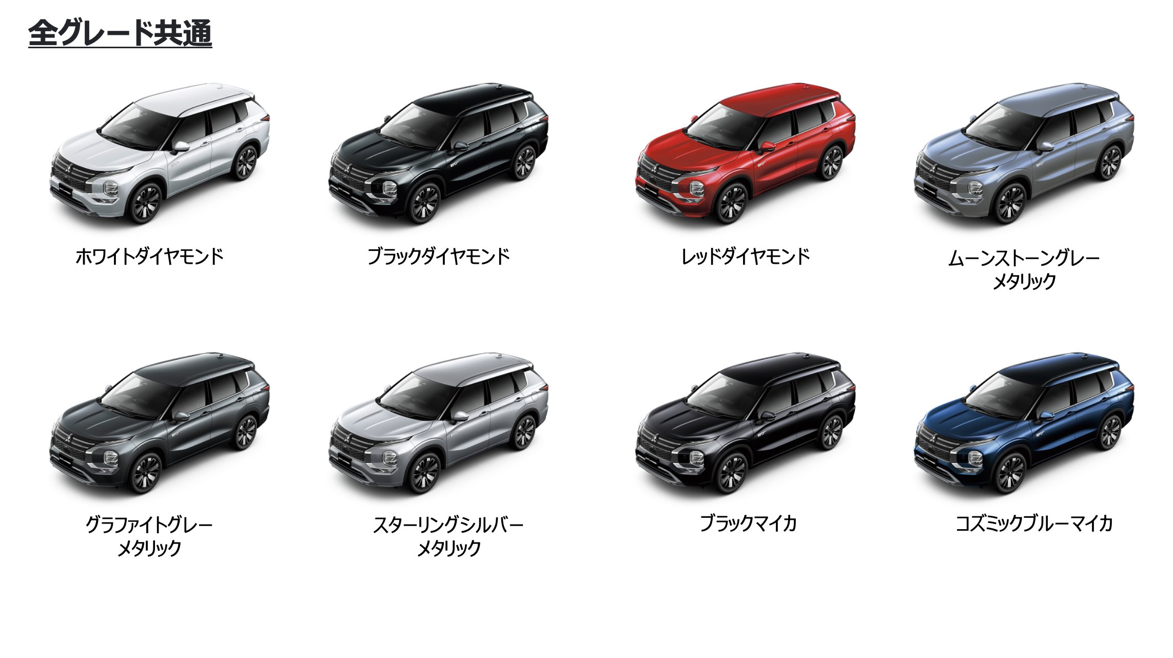 新型アウトランダーのカラーラインナップは全グレード共通で選択できるカラーが8色(有料色あり)。