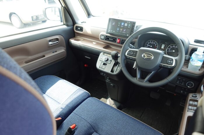 セオリーは深みのあるブラウンとネイビーの組み合わせで、落ち着いた室内空間を実現。本革巻のステアリングホイールやシフトノブで、「セオリー」ならではの上品さを演出しており、ストライプス同様、新開発のフルファブリックシートでソファのような座り心地の良さを実現しています。