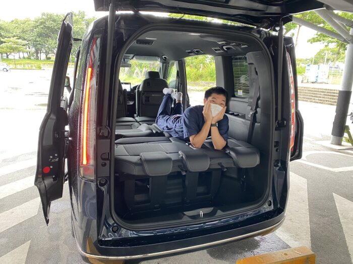 個人的にビックリしたのが、3列目のシートをアレンジすることで快適なテレワークスペースとして活用できることです。クルマの中にテレワークスペースが作れるなんて、、、新型ステップワゴン凄すぎ!