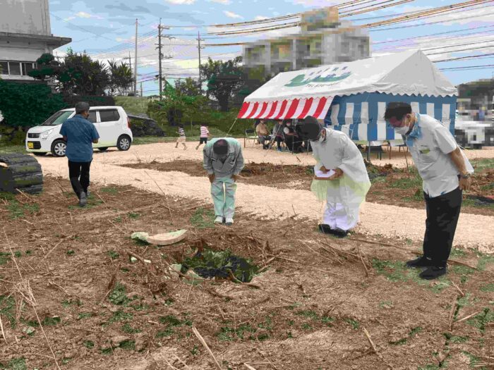地鎮祭とはお家などを建てる際に土地の神様を鎮めて、工事の安全や建物の繁栄を祈る儀式のことを言います。
