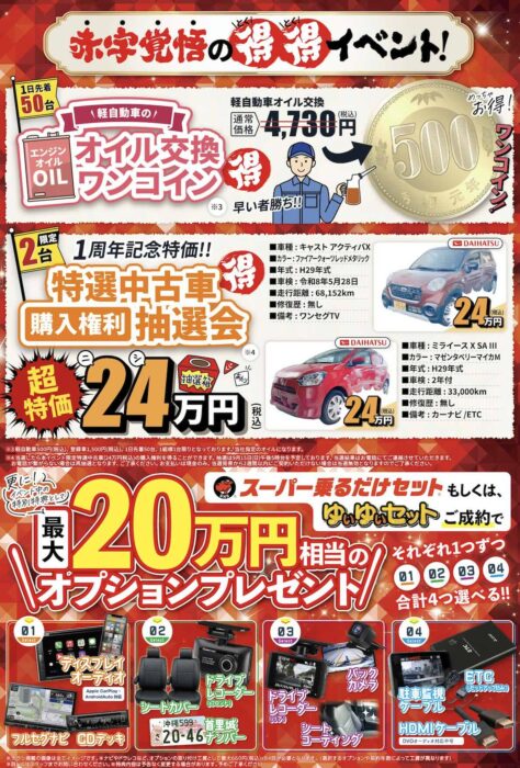 ・24万円で購入できる超お得な「特選中古車の購入権利抽選会」