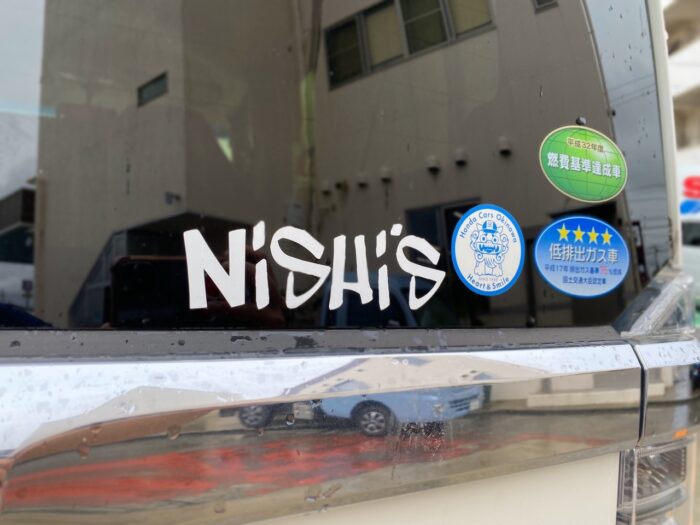 結論から言うと、沖縄県にある車屋さん「西自動車商会」でご購入していただいたクルマへ貼らさせていただいているステッカーなんです。