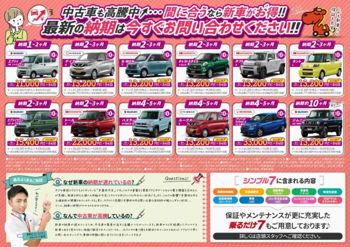 納期は日々変化しておりますので、気になった方は今すぐお電話ください!!