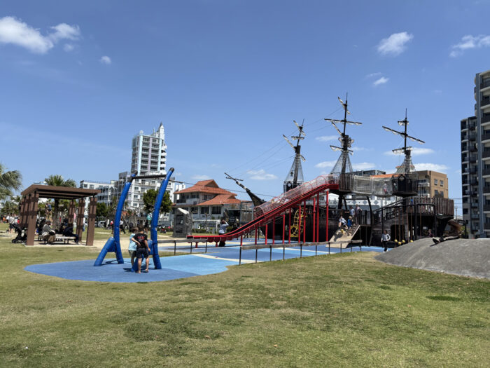 1.ビーチ隣に無料で遊べる大型遊具がある