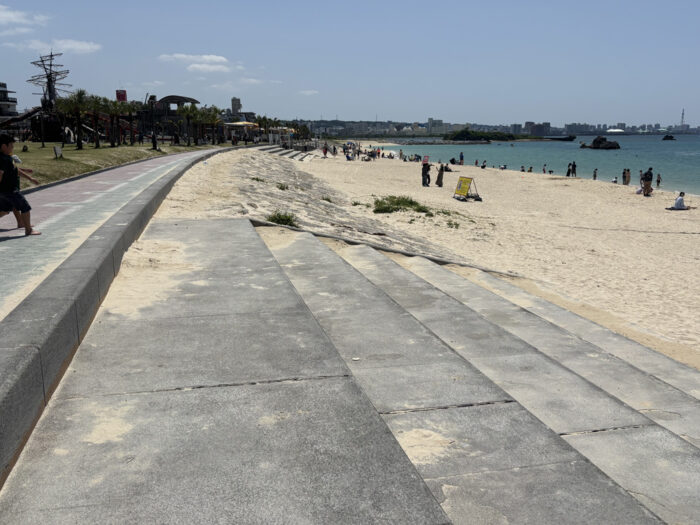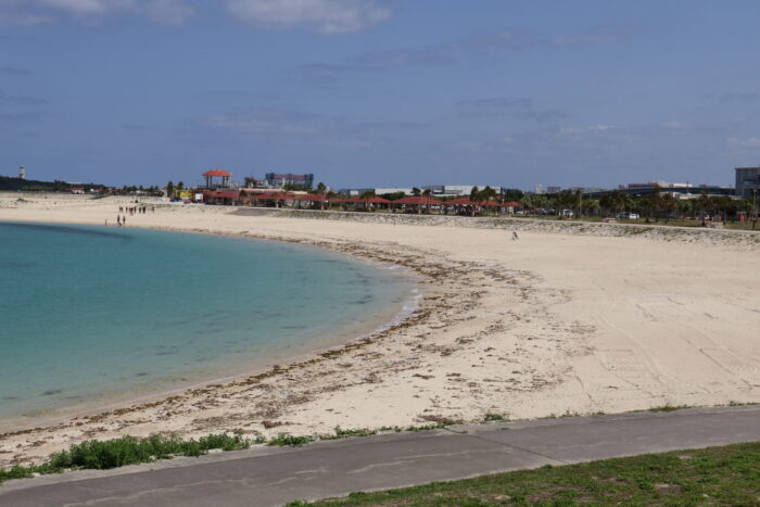「那覇空港から一番近い楽園ビーチ」と公式ホームページでも紹介されているこのビーチは、沖縄アウトレットモールあしびなーやレンタカーショップが多く立ち並ぶ、観光客に人気の豊崎エリアに位置しています。