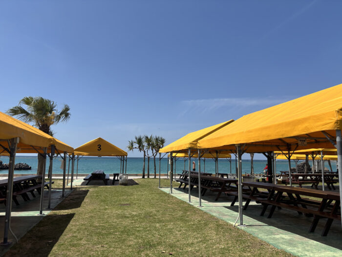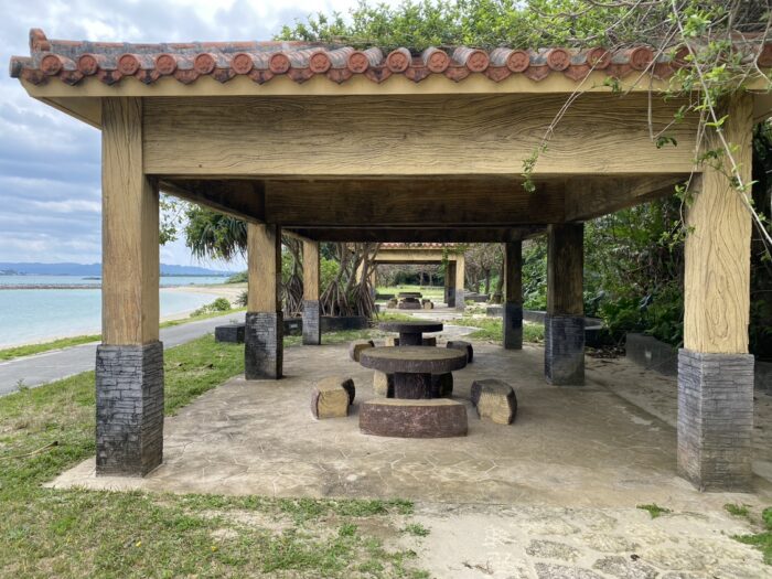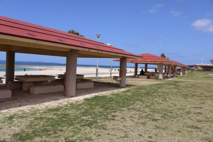 ビーチ利用の方は、この東屋に荷物を置いて遊泳を楽しんでいる様子でした。