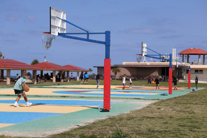 ストリートバスケのコートとして使われていたり、学生たちの練習の場になっていたりと、日常の中にバスケが根付いているのが印象的です。