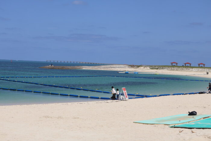 全長700メートルの県内最大級の美しい人工ビーチには、ハブクラゲ防止ネットが設置されており、ビーチ監視員も常駐しているため、安心して快適に楽しむことができます。
