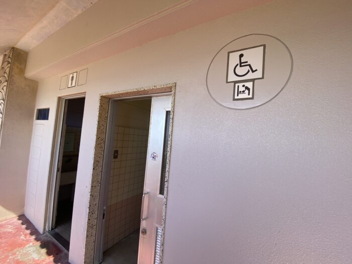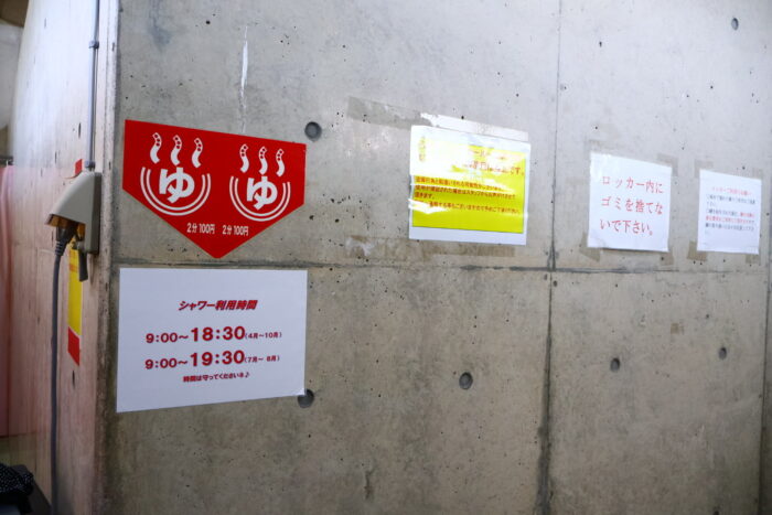 駐車場を降りてすぐの場所に、受付・トイレ・シャワールームがコンパクトにまとまっているのが嬉しいポイント。