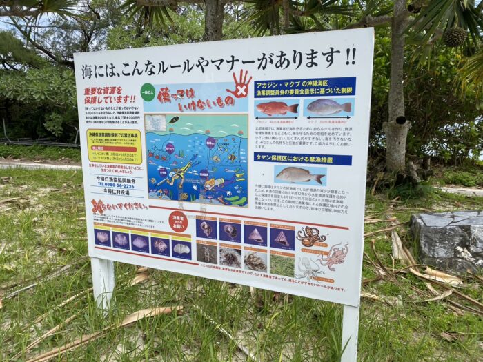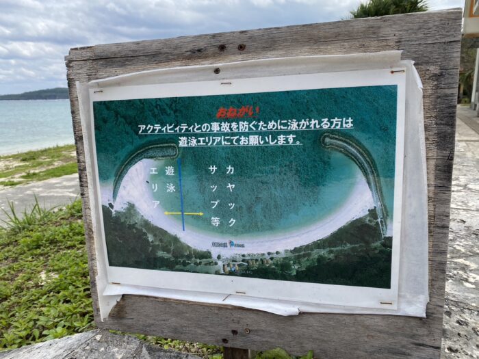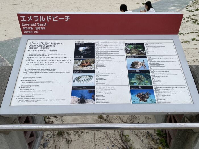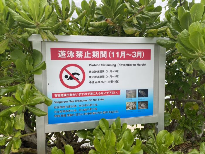 対策:事前に危険動物の看板を確認する、ハブクラゲに刺された際に一次対応できるお酢などを持参する