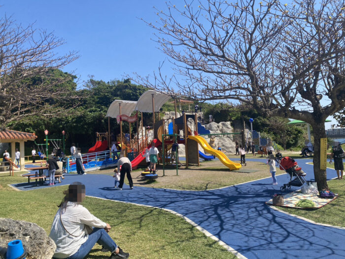 遊具で思いきり遊ぶ子どもたちを見守りながら、大人たちは近くの芝生でのんびり過ごしているご家族が多い印象です。