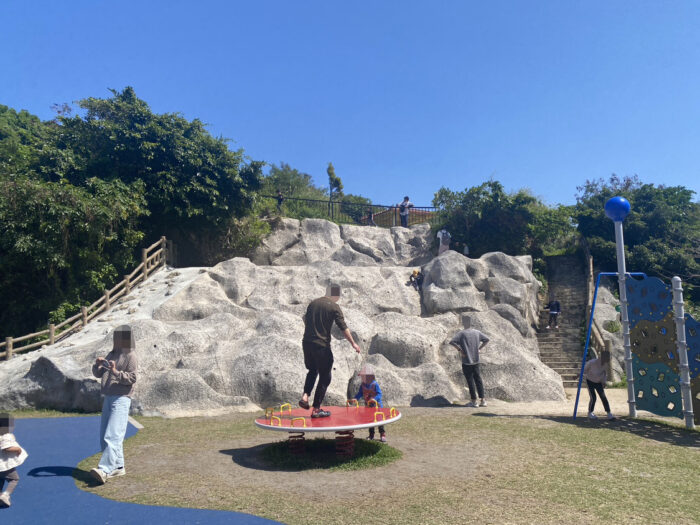 写真には写っていませんが、すぐ隣には2〜3歳向けの小さめの遊具もあります。