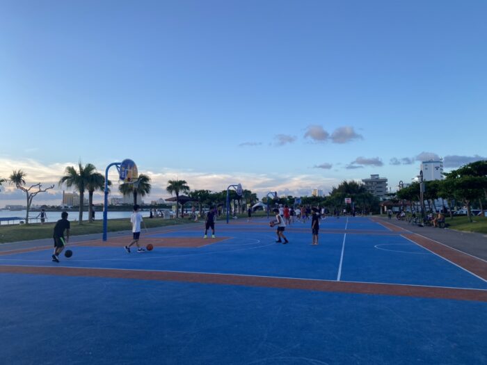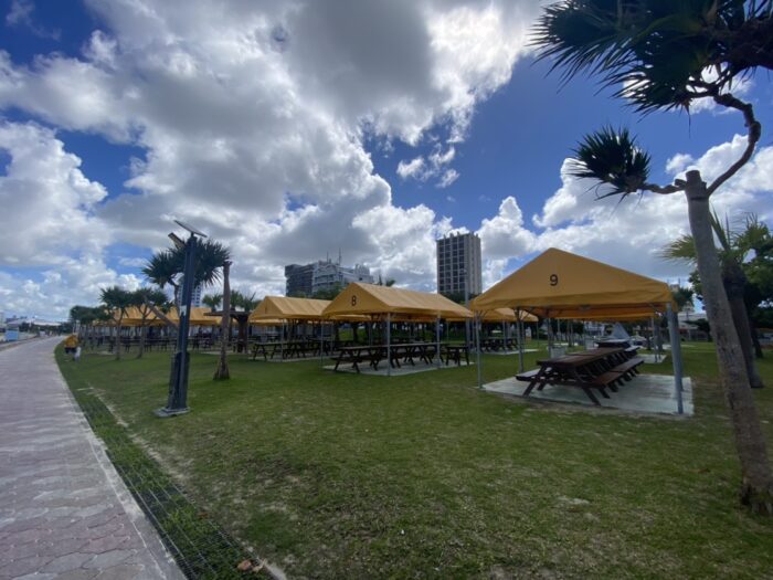 公園は意外と広く、サンエーハンビータウンの所から沖縄そば鶴小(ちるぐゎー)北谷店の所まであります。