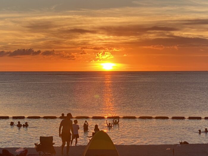 アラハビーチは、北谷町の安良波公園内にある全長約600メートルのロングビーチで、普段は地元の憩いの場として人気のビーチとなっています。