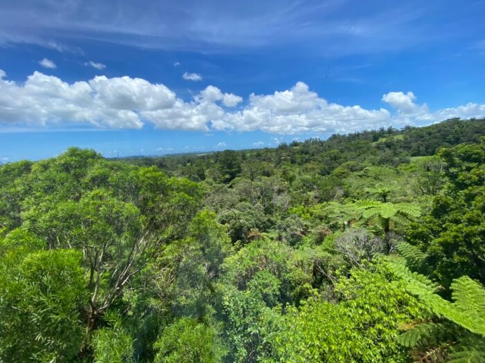 大きなシダが生い茂る亜熱帯の森には野鳥や昆虫がいます。