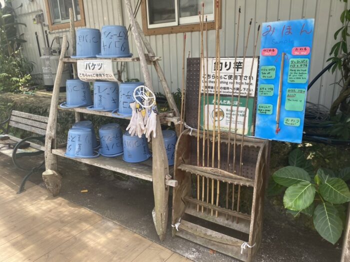 覗いてみるとセルフ形式でエサを購入したら釣り竿は無料で使用できるとのこと。