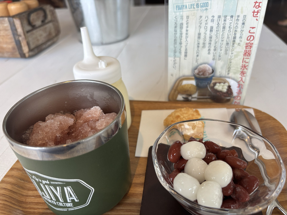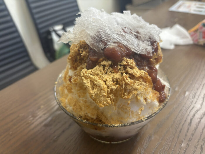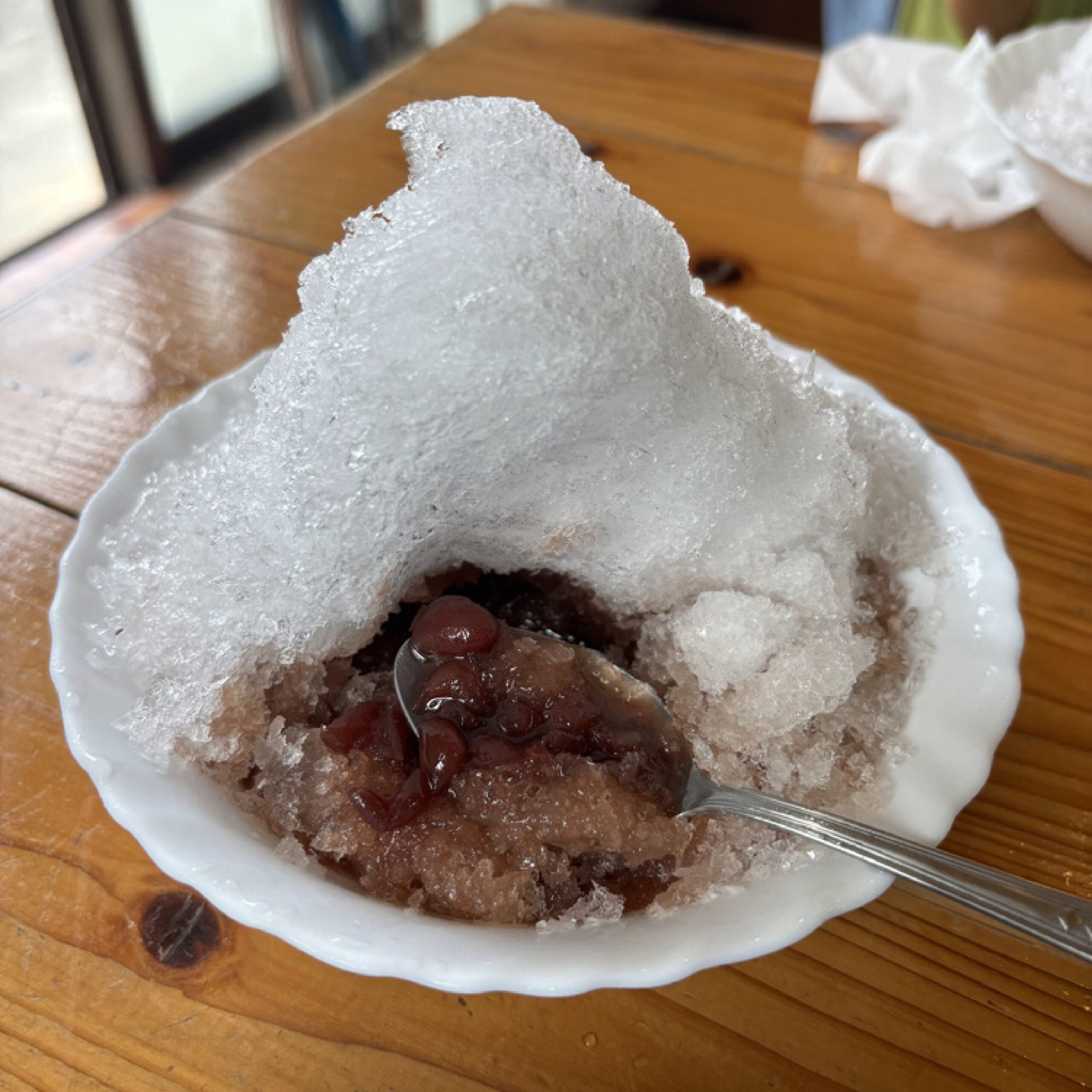 氷を崩しながら豆と一緒に食べると、口の中にやさしい甘さと懐かしさが広がります。