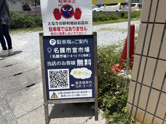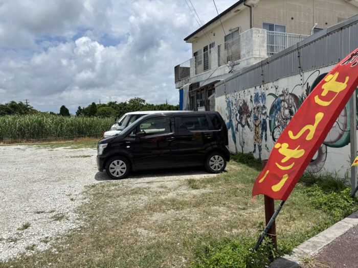 駐車場 : 本部町営市場駐車場(無料)に複数台