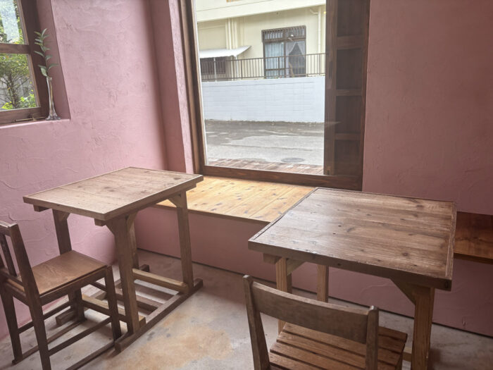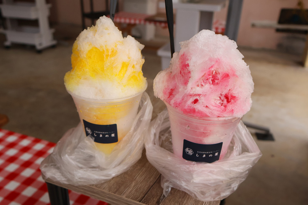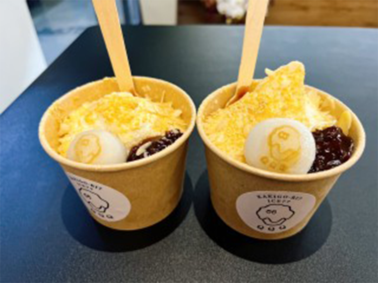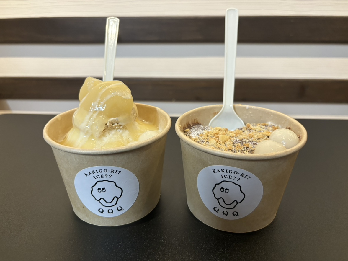 店の前にはイートインスペースがあり、削りたてのかき氷をその場で楽しめます。