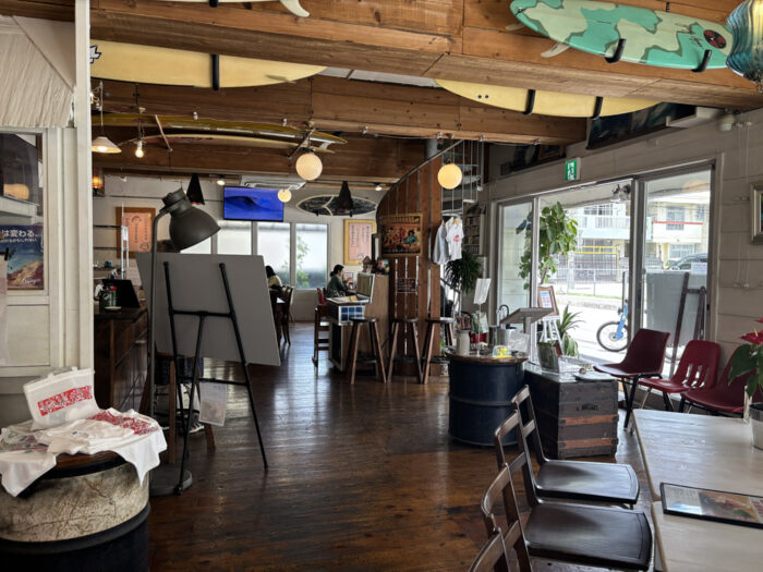 カラフルな壁が目を引く外観に、広々とした店内は開放感たっぷり。