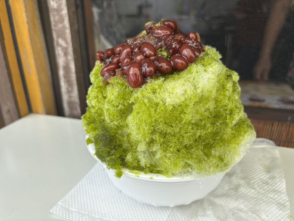甘く煮た金時豆にたっぷりの氷を重ねたローカルスイーツは、暑い夏にもぴったり。