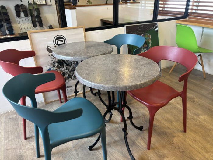 大きなテーブルをシェアして、ゆっくり過ごせます。