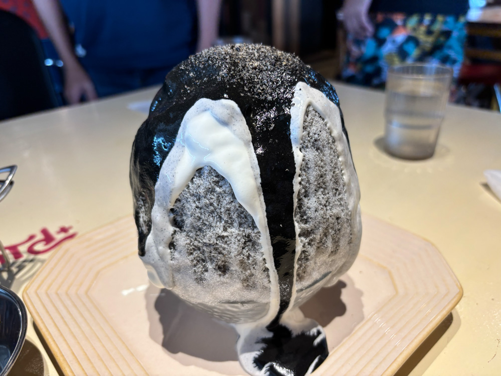 黒ゴマの香りが香ばしく、ふわふわの氷にたっぷりかかったソース、クリームが最高でした。