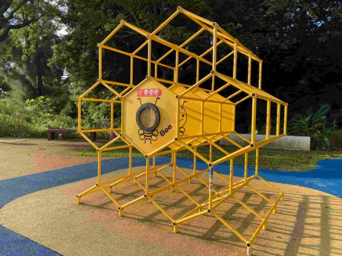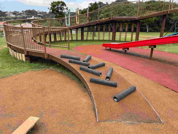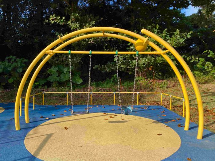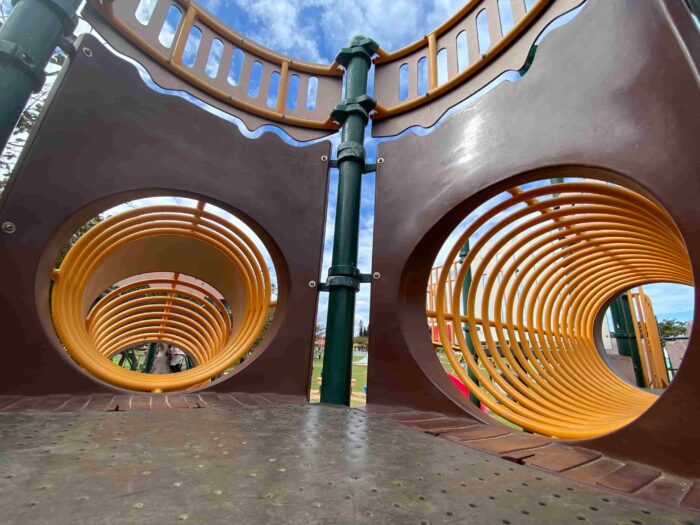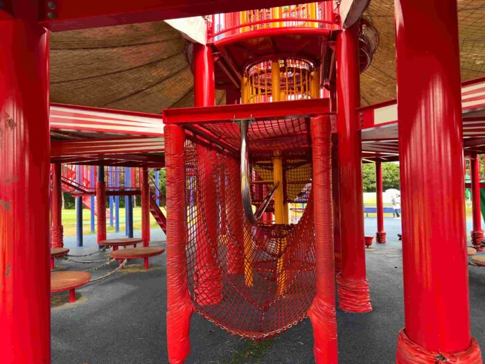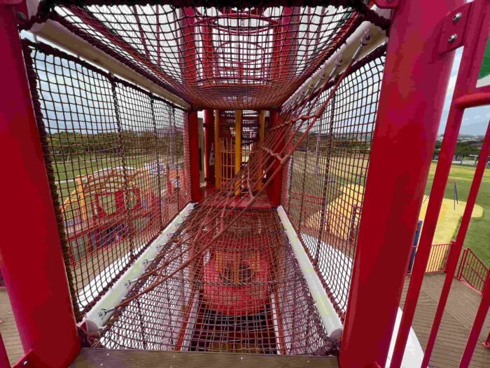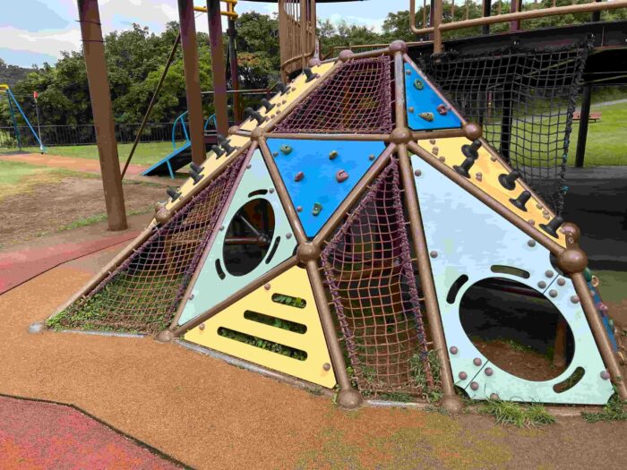 中には老朽化のため使用禁止になっている遊具もありますが、ふれあい広場ゾーンの “Cゾーン” というところに新しい綺麗な遊具があります。