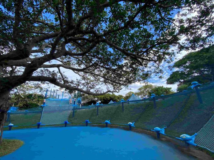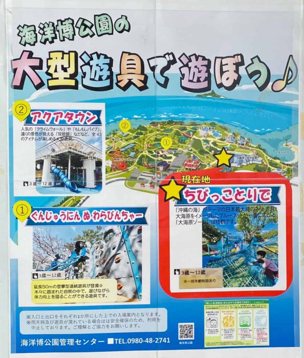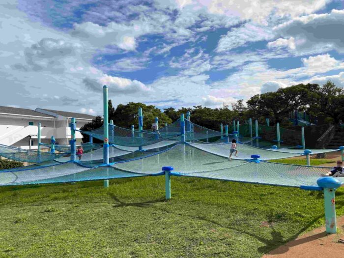 有名な美ら海水族館がある海洋博公園に、「ちびっことりで」という国内最大級のネット遊具があります。