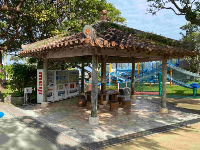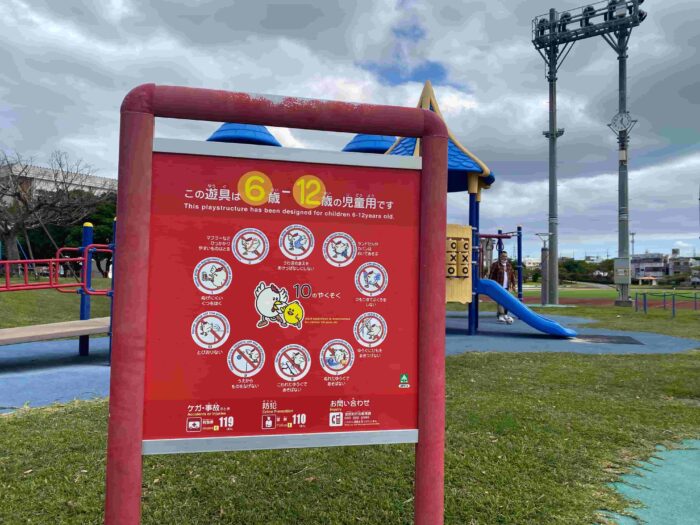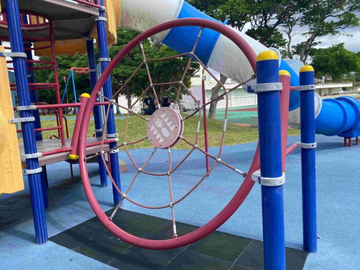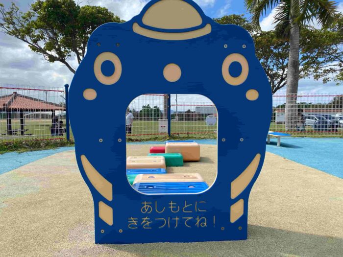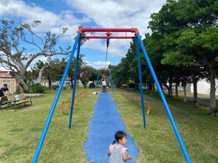 また、少し離れた夕陽の広場に「アクアタウン」、おきなわ郷土村に「ぐんじゅうにん ぬ わらびんちゃー」という遊具があります♪