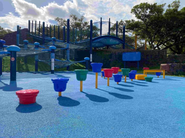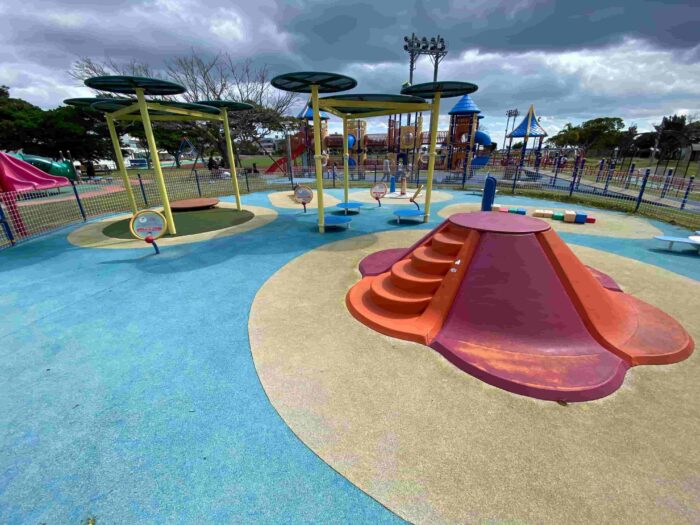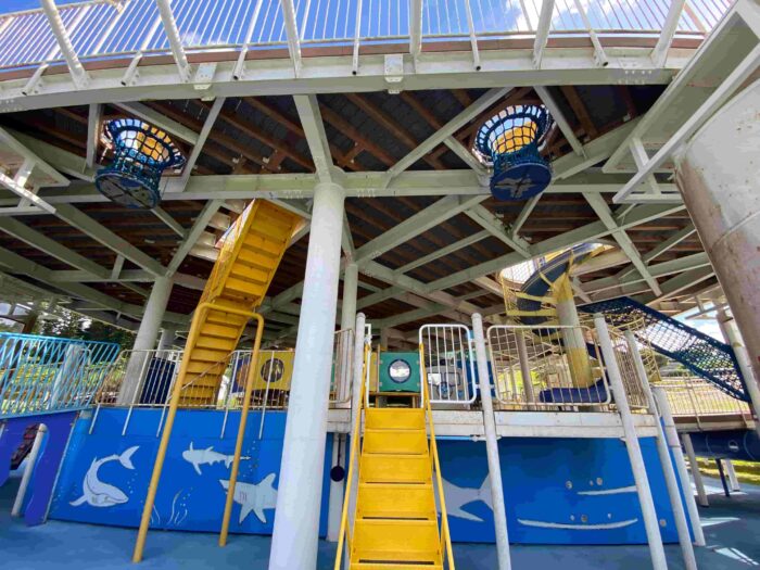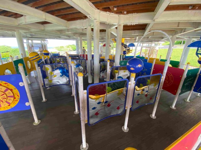 沖縄の海をテーマにした4つのゾーンに分かれた大きな遊具が大人気。