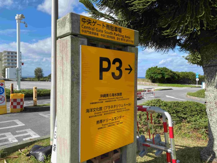 P2 駐車場、P3 中央ゲート南駐車場、P5 中央ゲート北駐車場(445台)