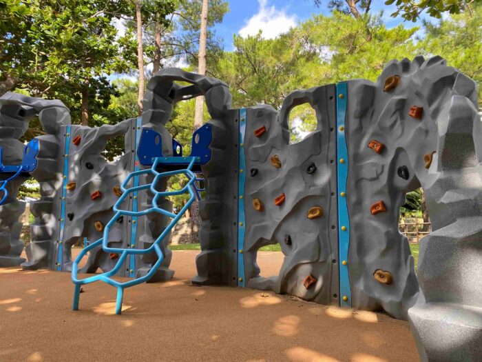 木々に囲まれた自然の中で、遊びながら体力向上を図ることができる遊具です♪