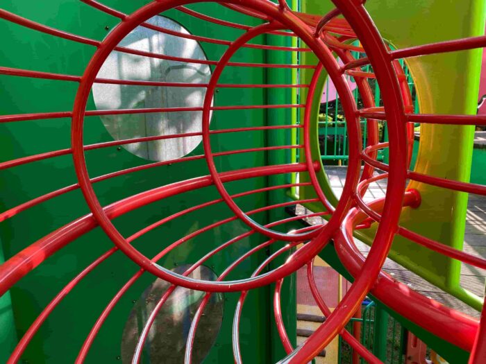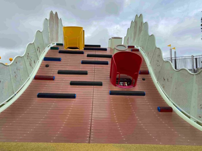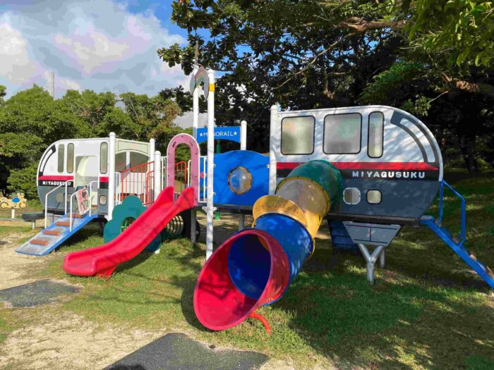 ゆいレールの形をした遊具や、可愛いカラフルな遊具も人気です。