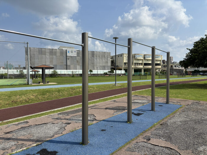 健康器具やストレッチ設備も点在しているので、子どもが遊んでいる間に大人も軽く体を動かせ、家族全員がリフレッシュできる公園です。