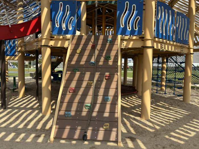 ネット遊具やクライミングウォールなど、体を思いっきり動かせる遊具がいっぱいです。