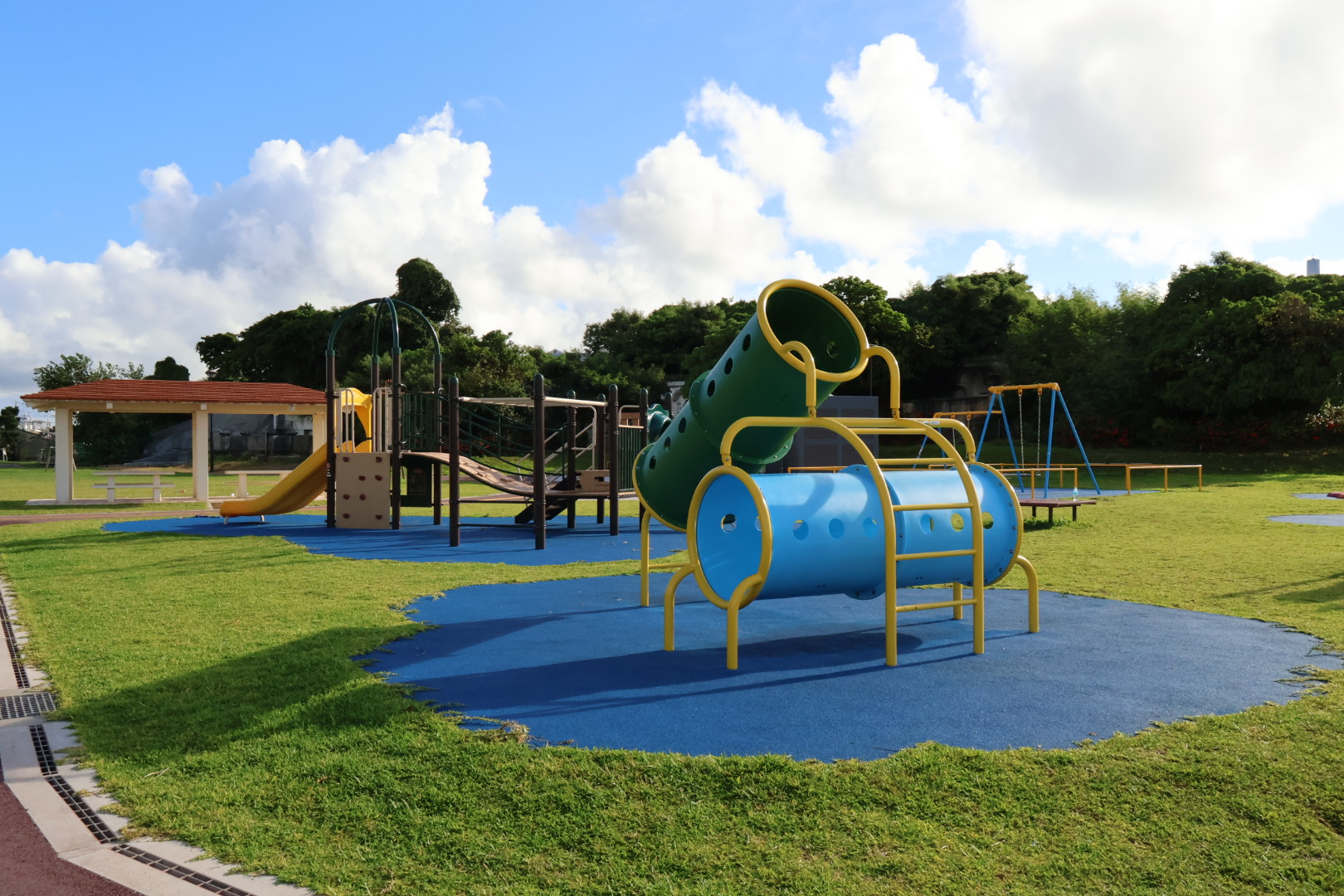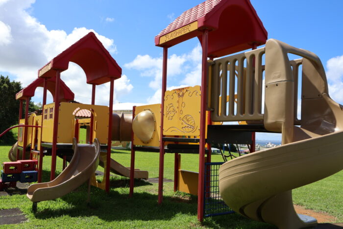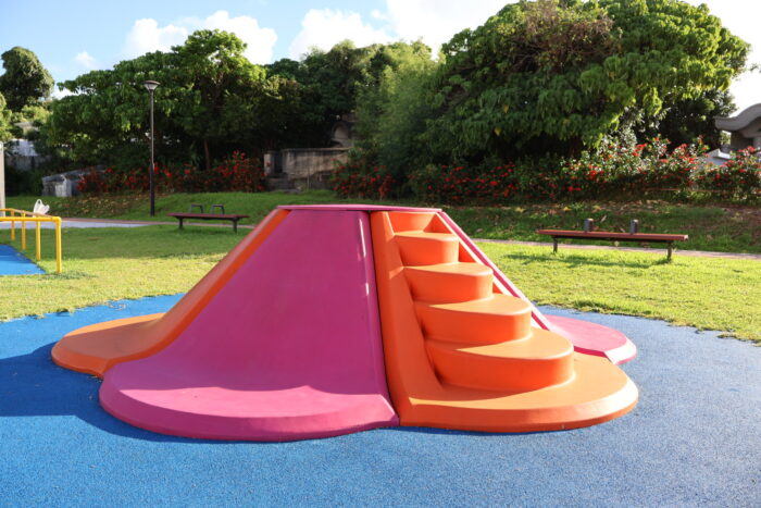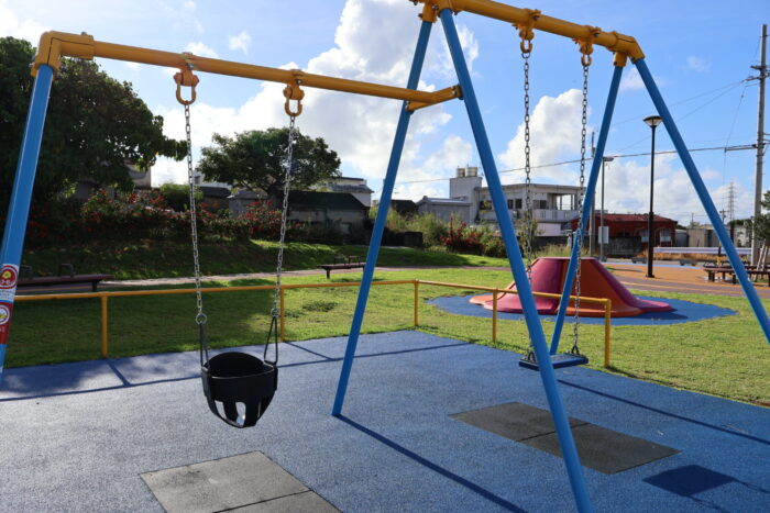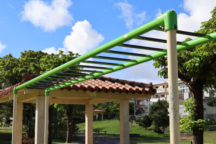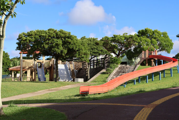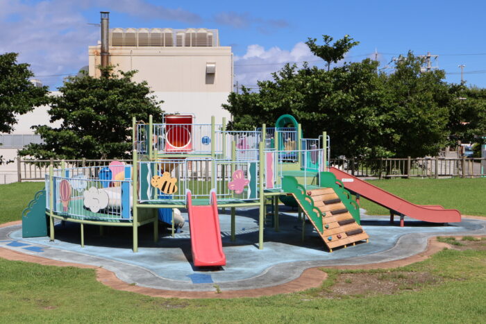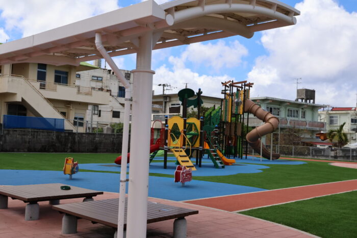 沖縄市東の住宅街にある「若夏公園」は、子育てファミリーに大人気の公園です。