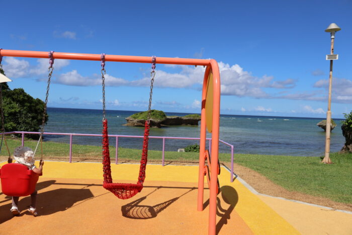きれいな海を見ながら乗れるブランコは大人でも楽しめるはず!