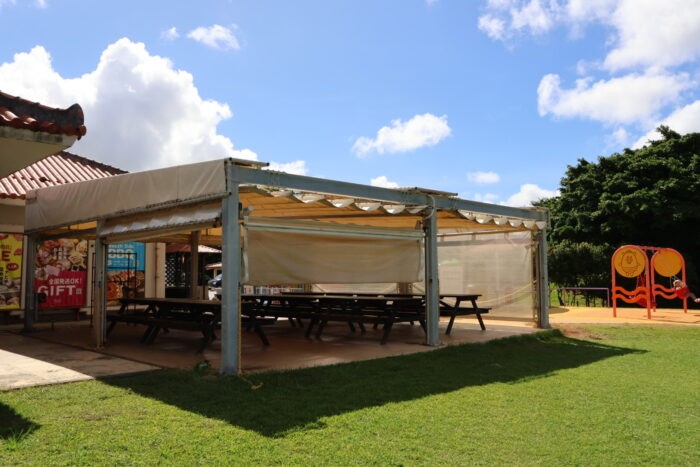 この施設は渡具知ビーチに面しており、バーベキューや食事、お土産購入などが楽しめるようです。