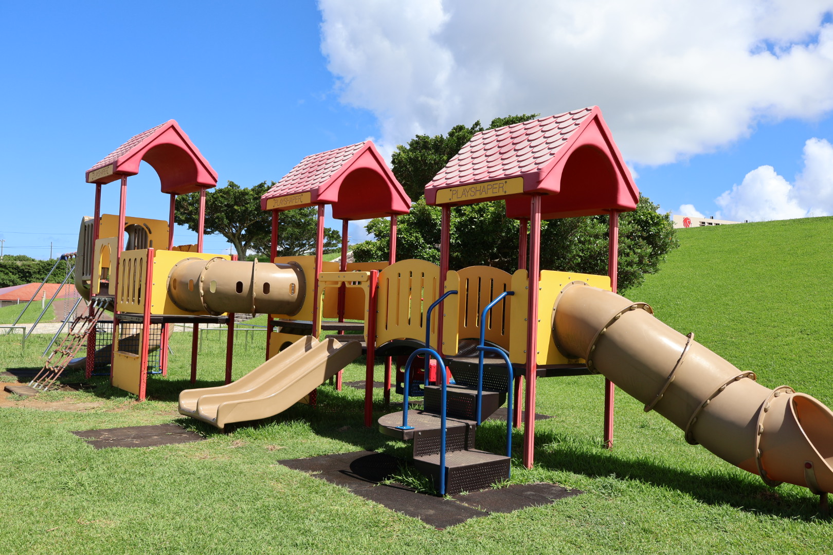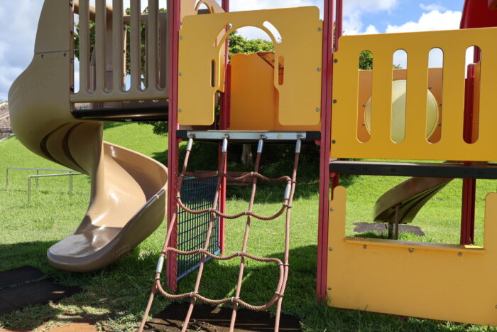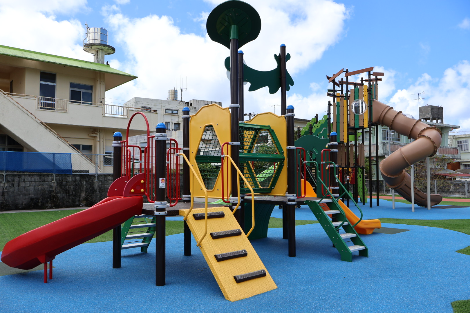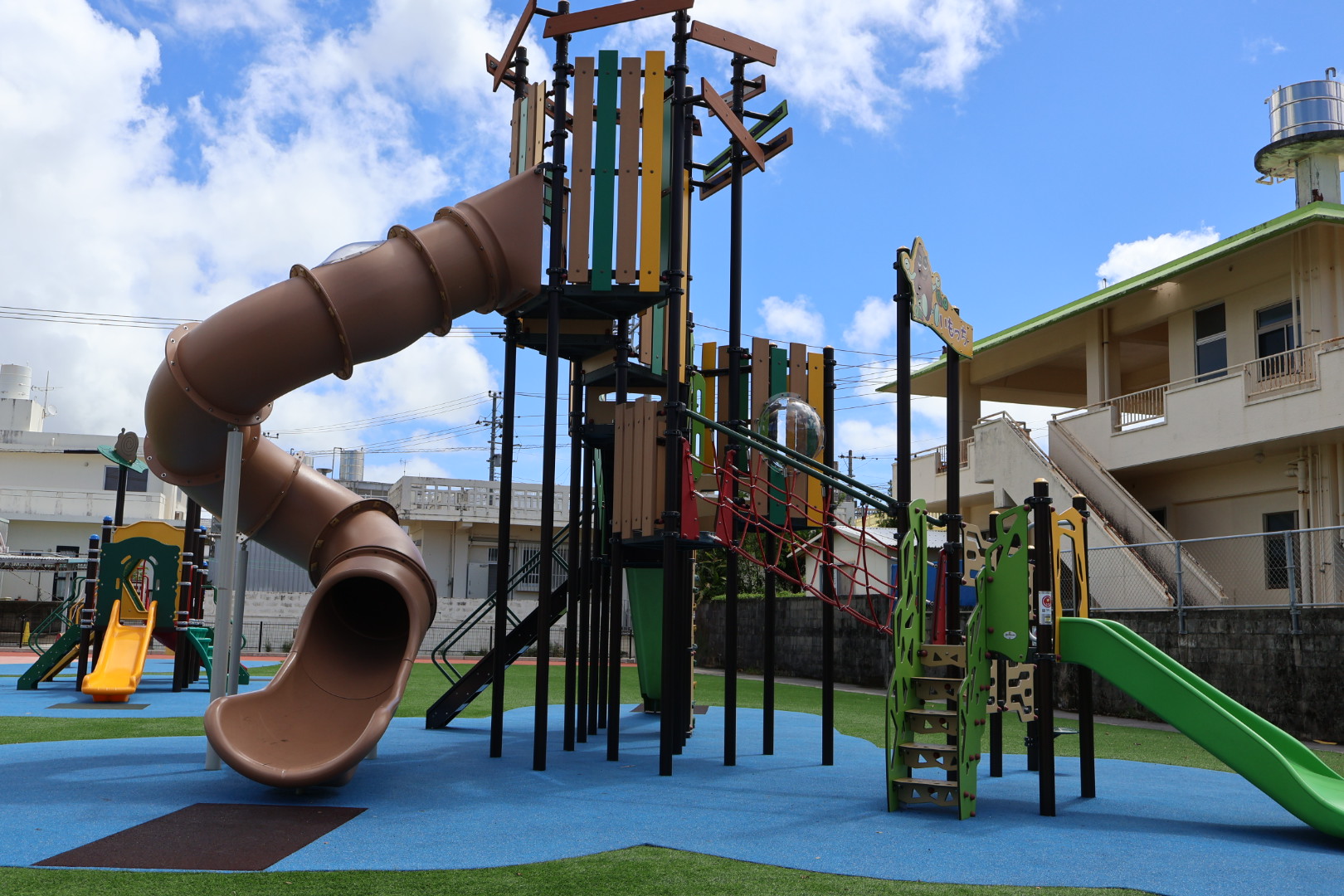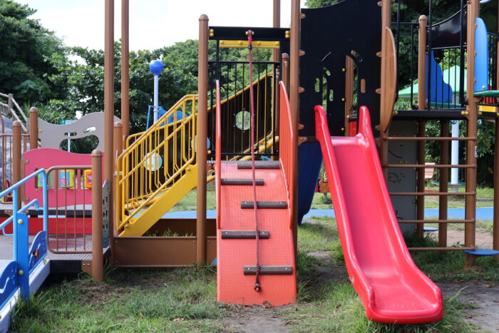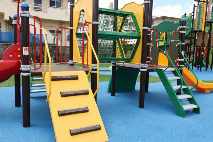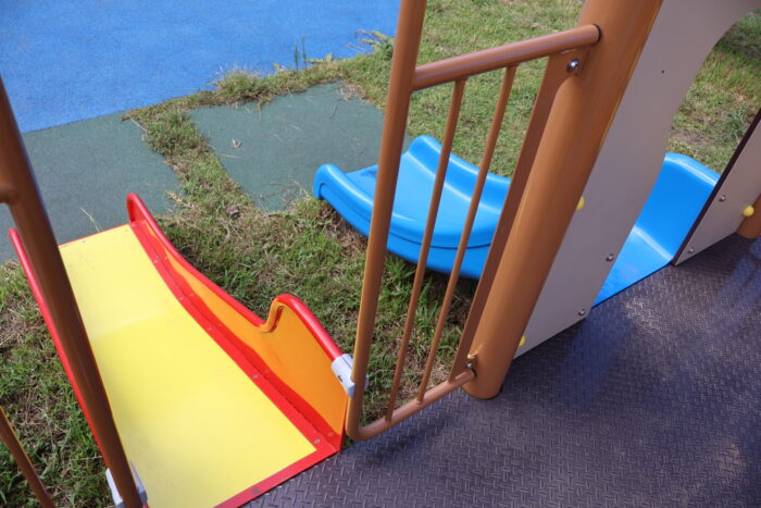 まだ新しいので遊具もとてもきれいで、滑り台は大きな子用、小さな子用と分かれて設置されています。