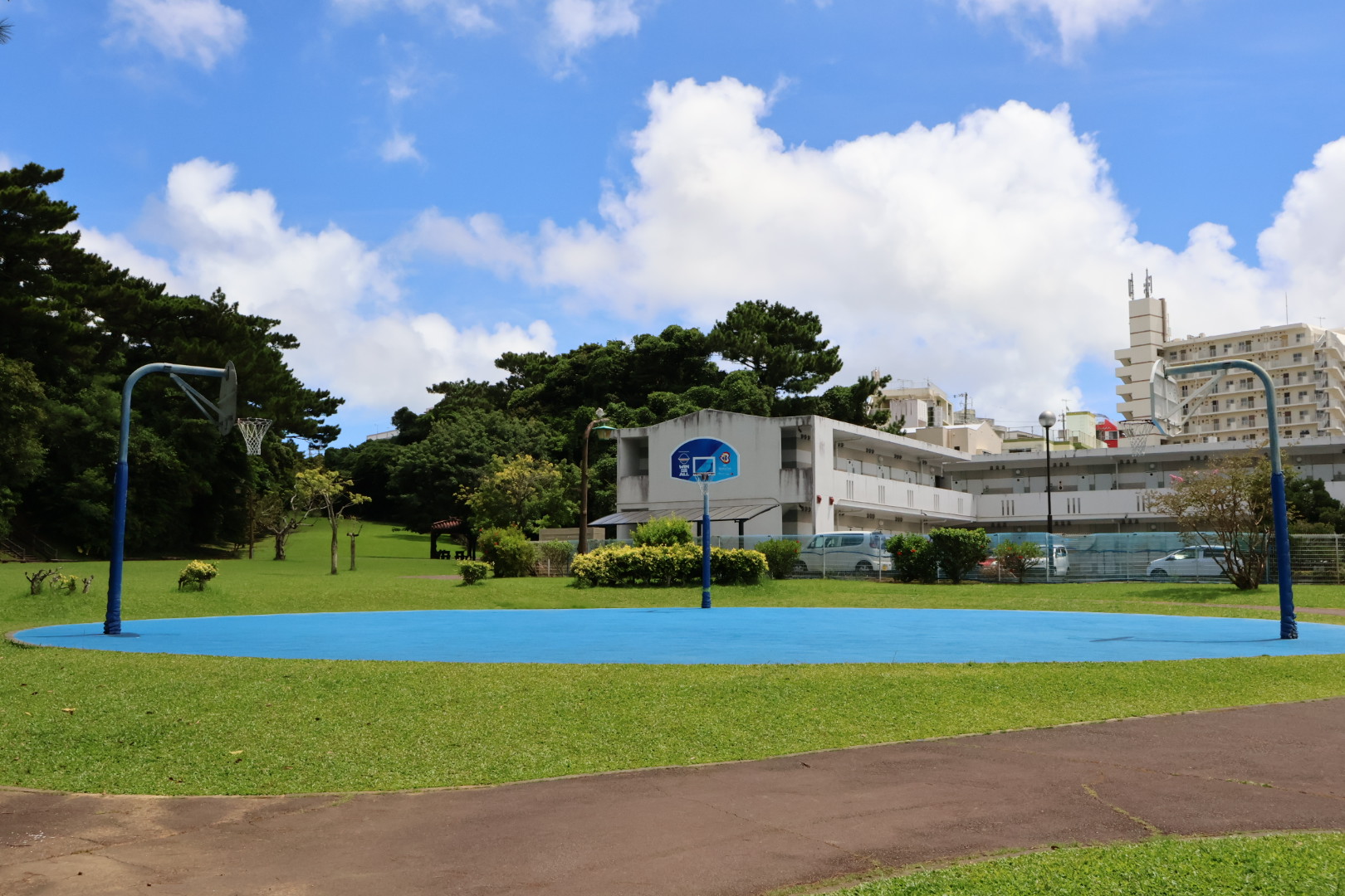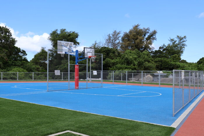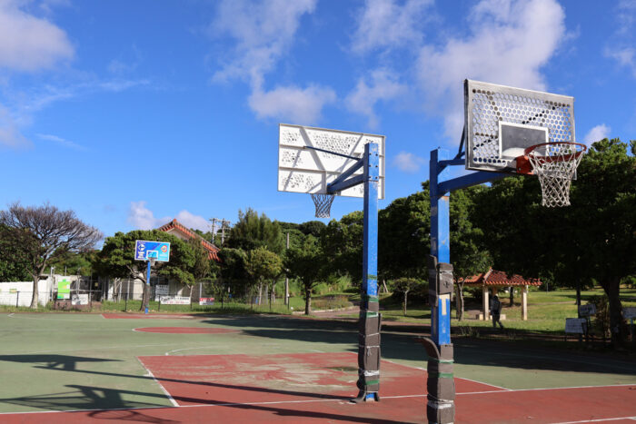 園内にはバスケットコートやウォーキングコースが整備されています。