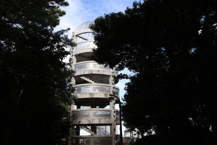 4階の展望台へは螺旋状の階段で