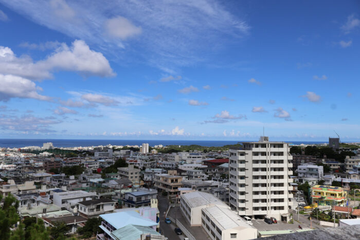展望台からは北谷の街並みや東シナ海を一望できる開放的な景色が広がります