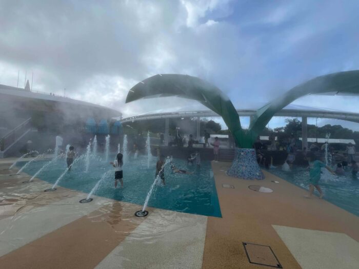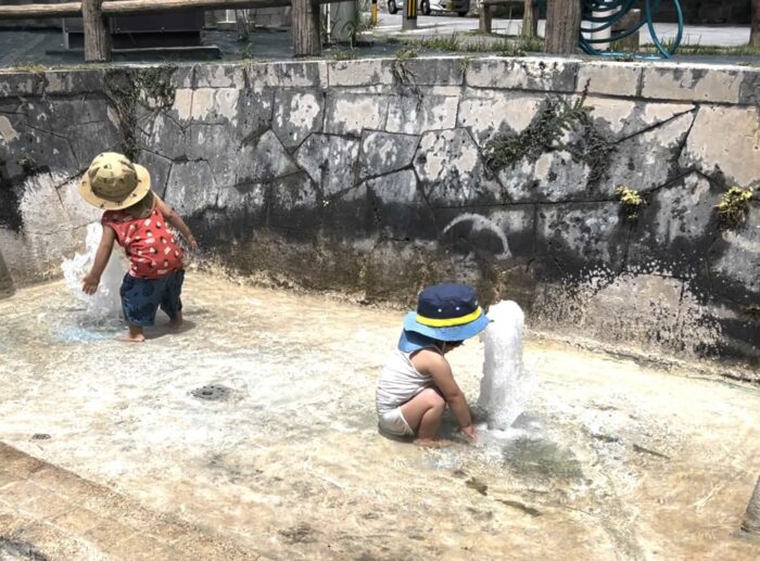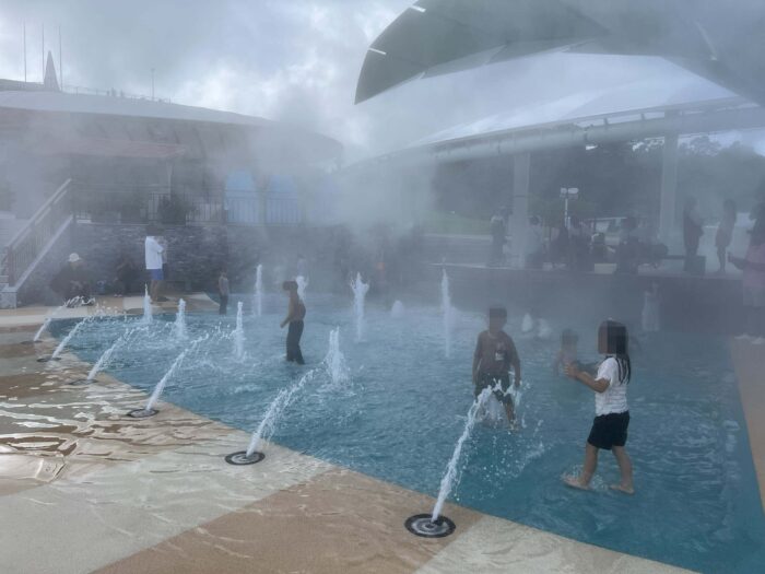 道の駅ぎのざの施設内にある水遊び場はとても綺麗に整備されており、毎日多くの人で賑わっています。
